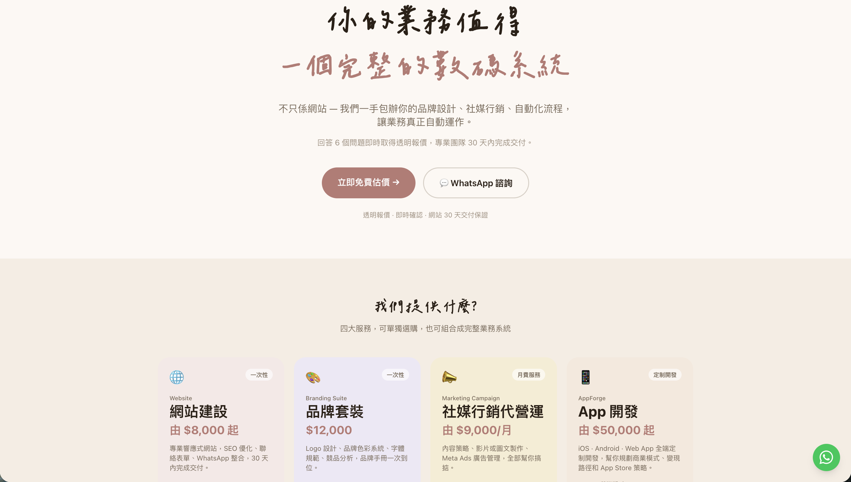 不只係網站 — 我們一手包辦你的品牌設計、社媒行銷、自動化流程,